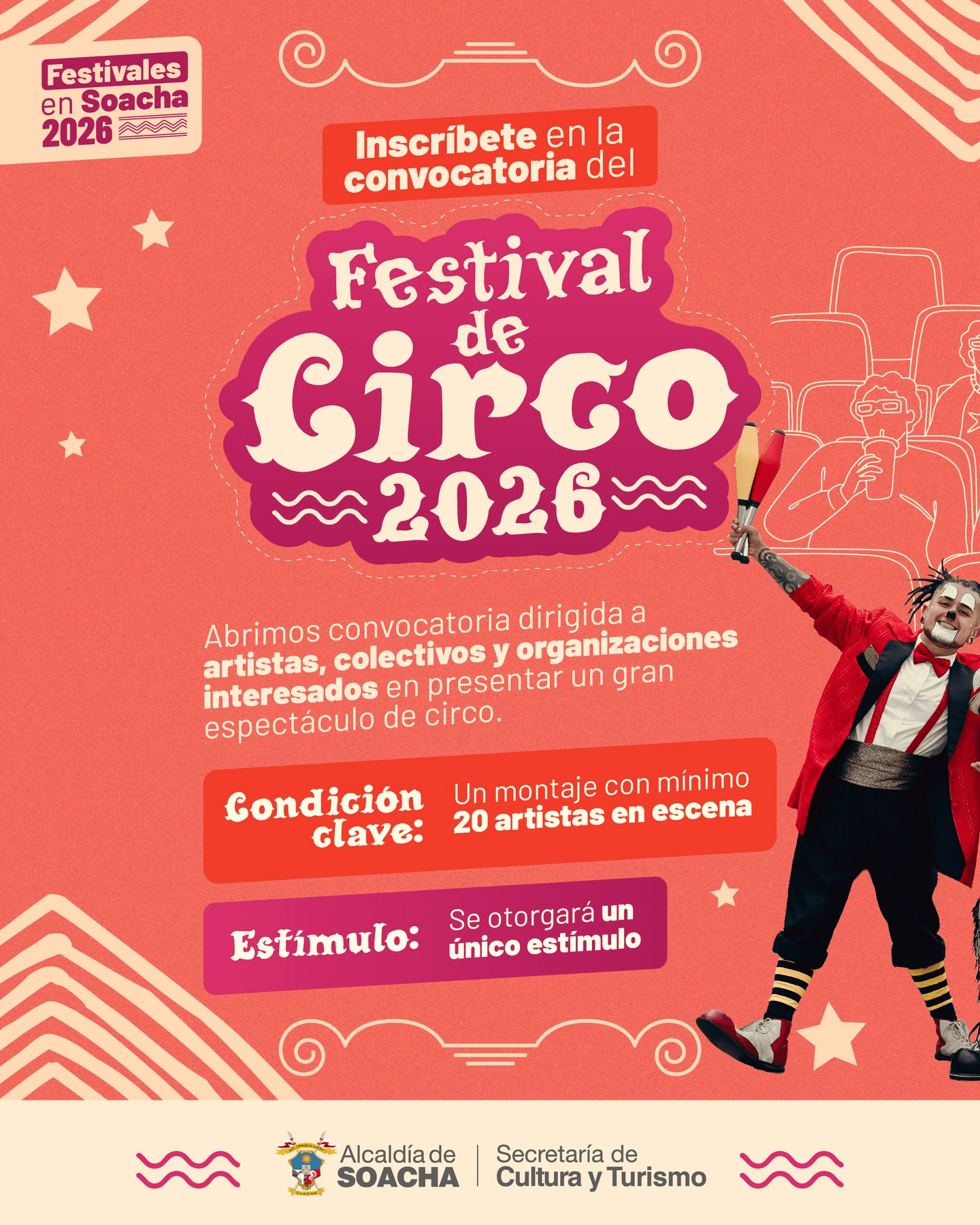 Abrimos la convocatoria del Festival de Circo de Soacha, un espacio para artistas, compañías y creadores que quieran llenar de magia, cada rincón de la ciudad. ![]()