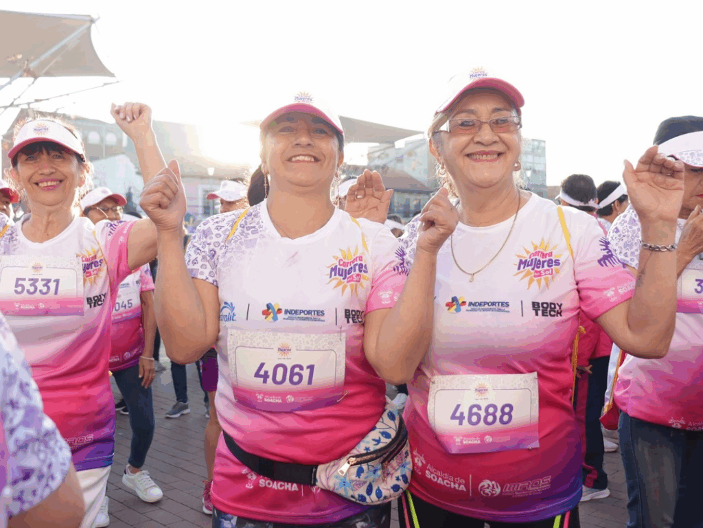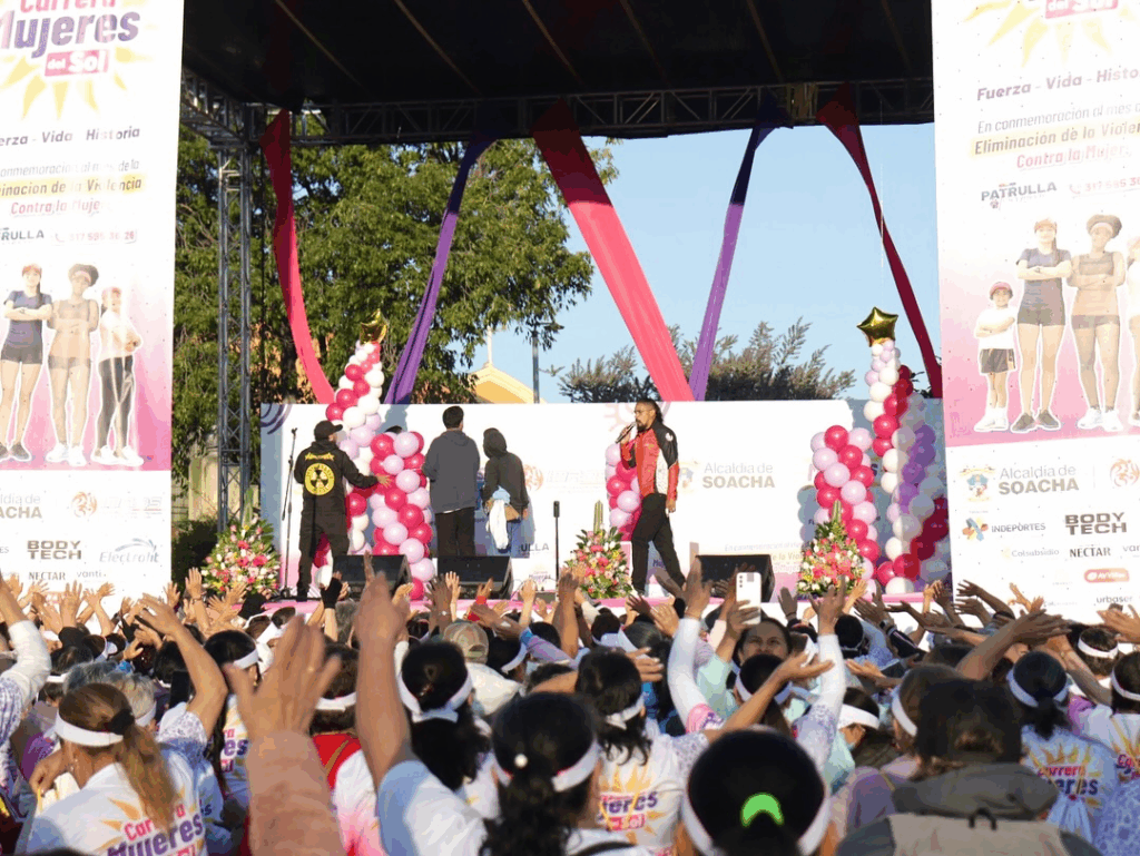 Desde el Parque Principal de Soacha estamos en calentamiento para la Carrera Mujeres del Sol.