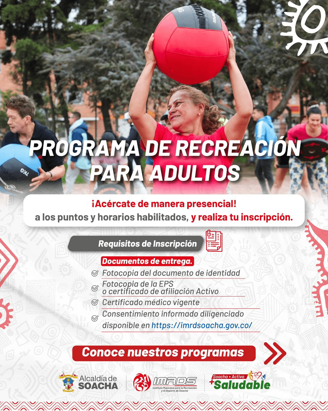 Si quieres ser parte de estas jornadas llenas de energía, bienestar y recreación, acércate a los puntos y horarios habilitados y realiza tu inscripción de manera presencial.