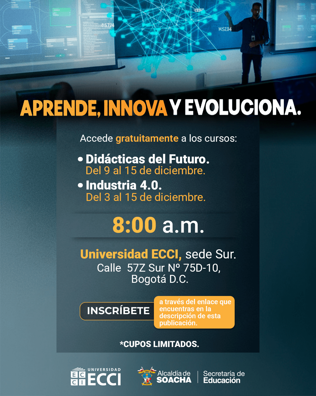 🚀 ¿Eres profesor de un colegio oficial o privado de Soacha y deseas impulsar tu carrera hacia el futuro? 🔜 ¡Estos cursos son de tu interés!