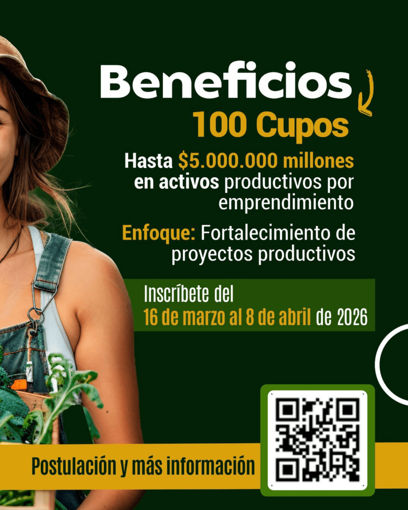 Más información en: https://www.cundinamarca.gov.co/dependencias/secagrocampesinado/servicios-al-ciudadano/convocatorias/convocatorioa-01-2026/convocatoria+agroemprende+2026
