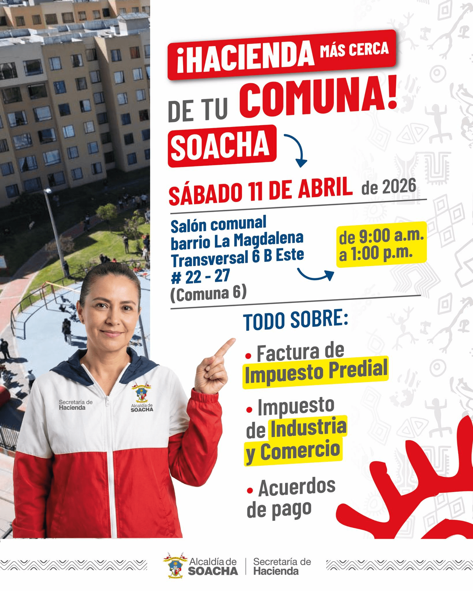 Estaremos en el Salón Comunal barrio la Magdalena, para que reclames tu factura del Impuesto Predial y conozcas los alivios tributarios disponibles para ti.