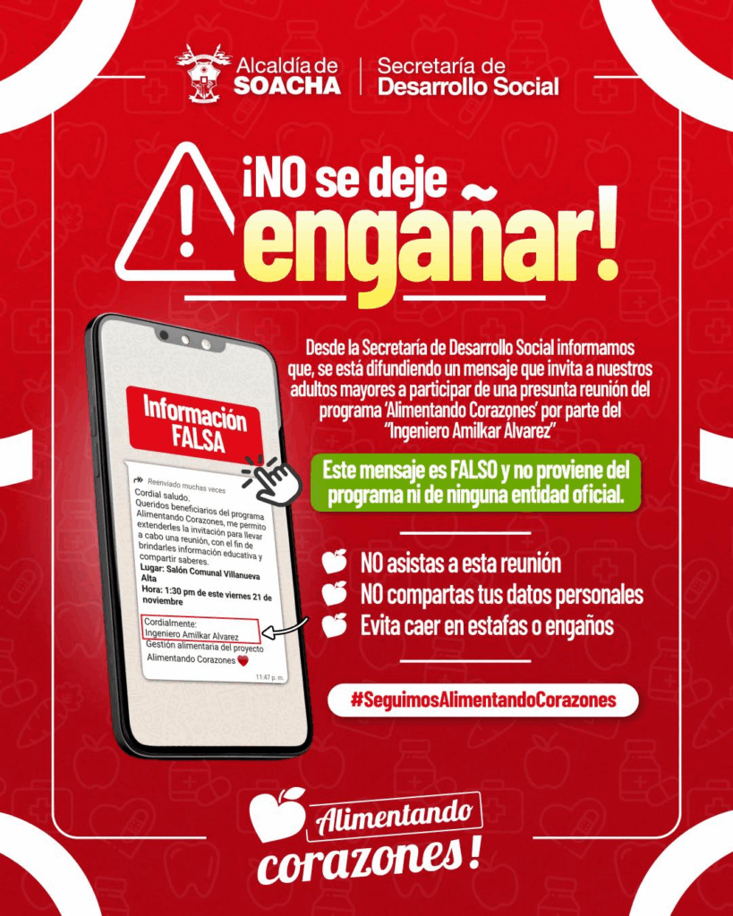 Se ha identificado a una persona que se está haciendo pasar por funcionario e invitando a la ciudadanía a una reunión no autorizada sobre el bono de Alimentando Corazones.