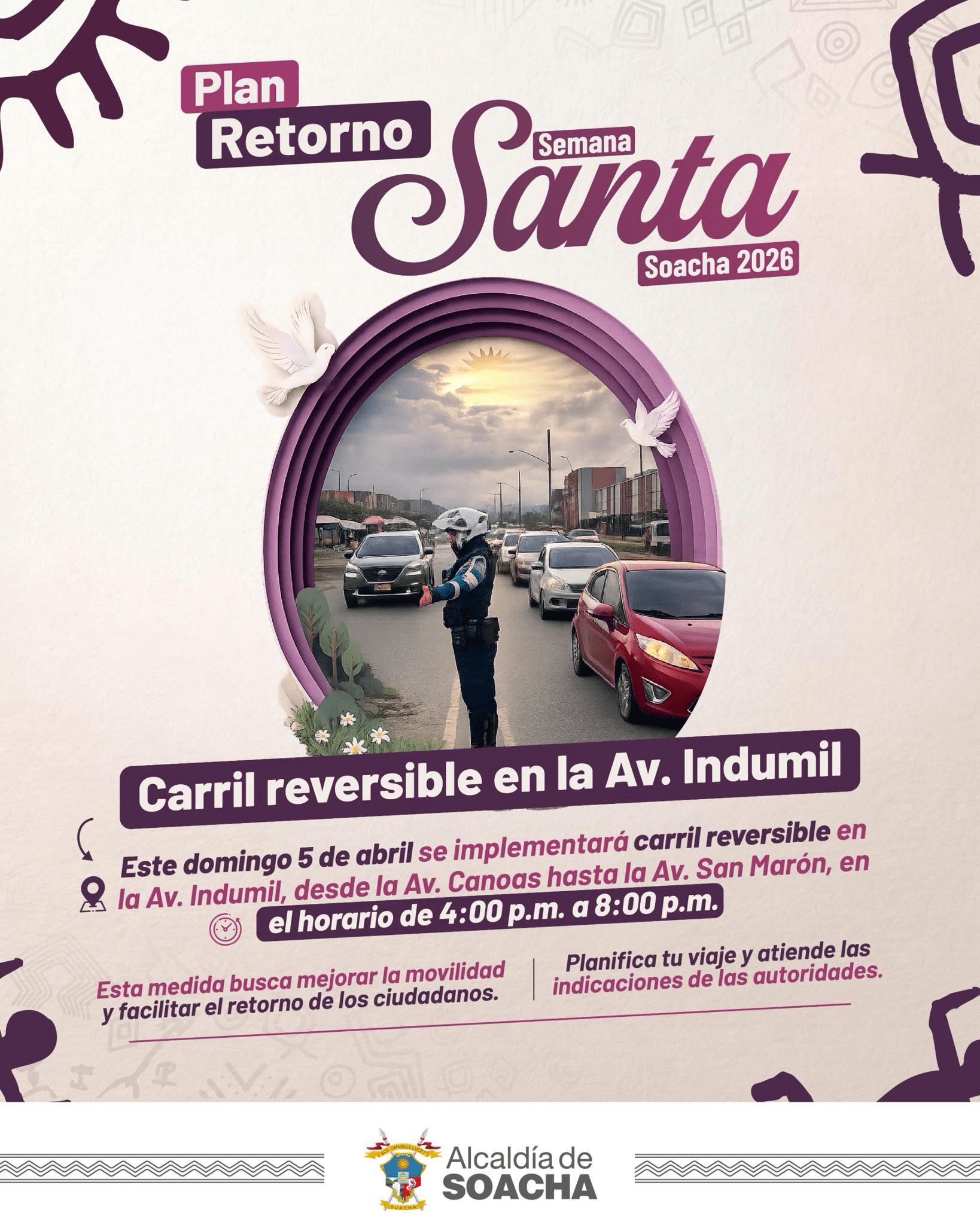 La Secretaría de Movilidad informa que este domingo 5 de abril se implementará un reversible sobre la vía Indumil, en el tramo comprendido entre el sector Canoas y la avenida San Marón.