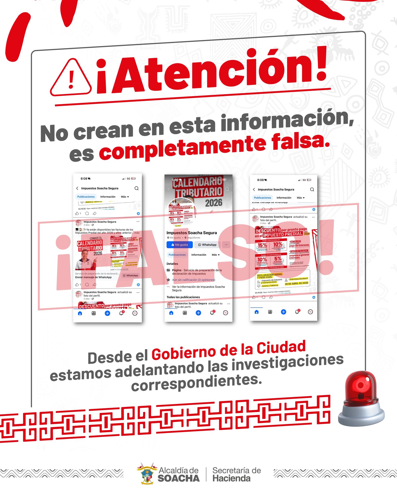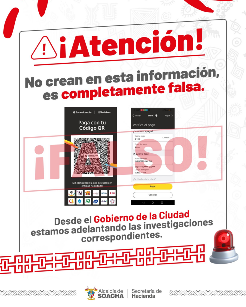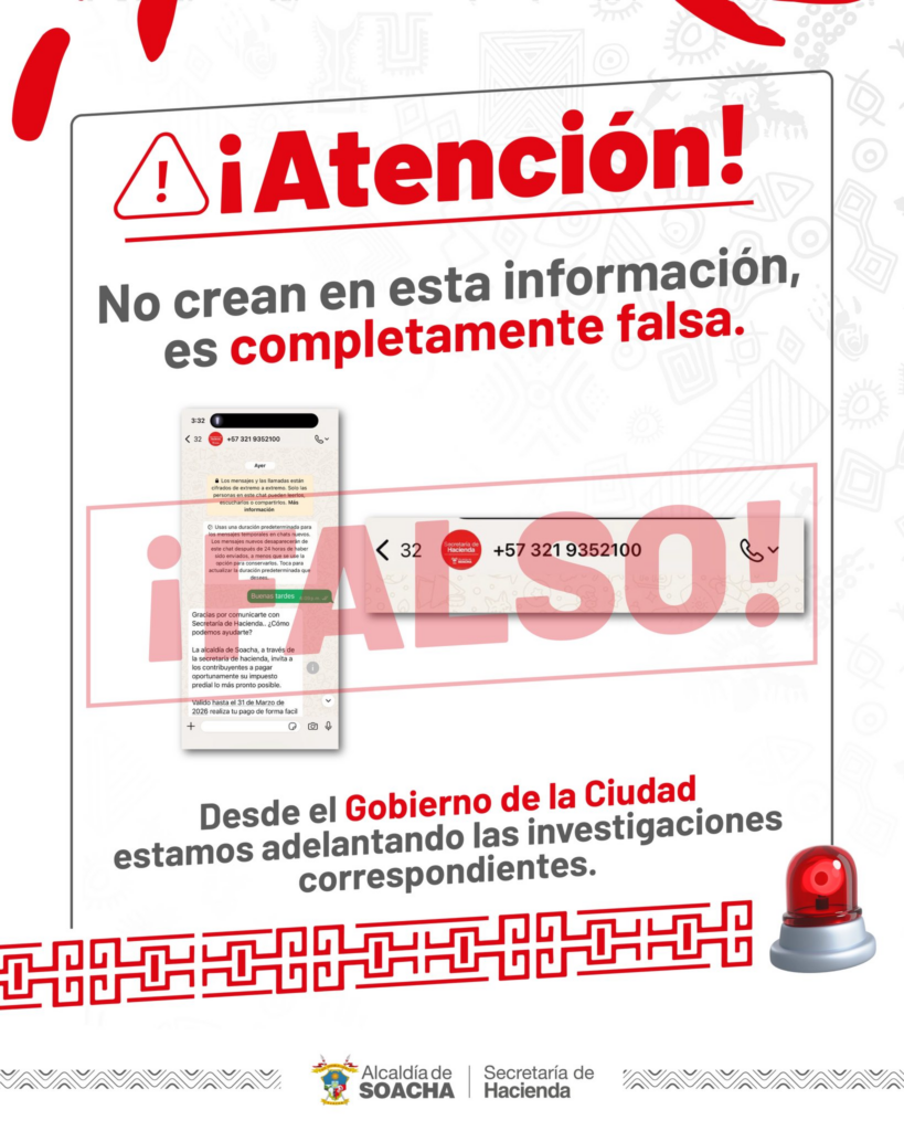 ¡Atención! No Crean en esta información, es falsa – Secretaría de Hacienda de Soacha.