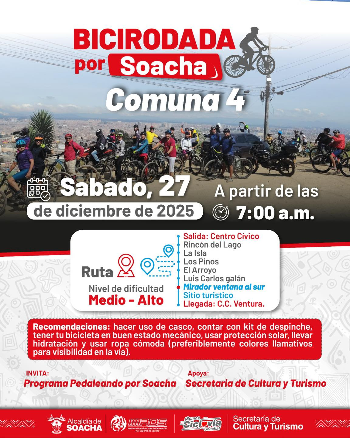Amantes de la actividad en dos ruedas, te invitamos a la última Bici rodada del año que será en la comuna 4, el día 27 de diciembre desde las 7:00 a.m. y a disfrutar de la ciclovía del domingo 28 de diciembre con la que despedimos este año que fue lleno de retos y mucho movimiento.