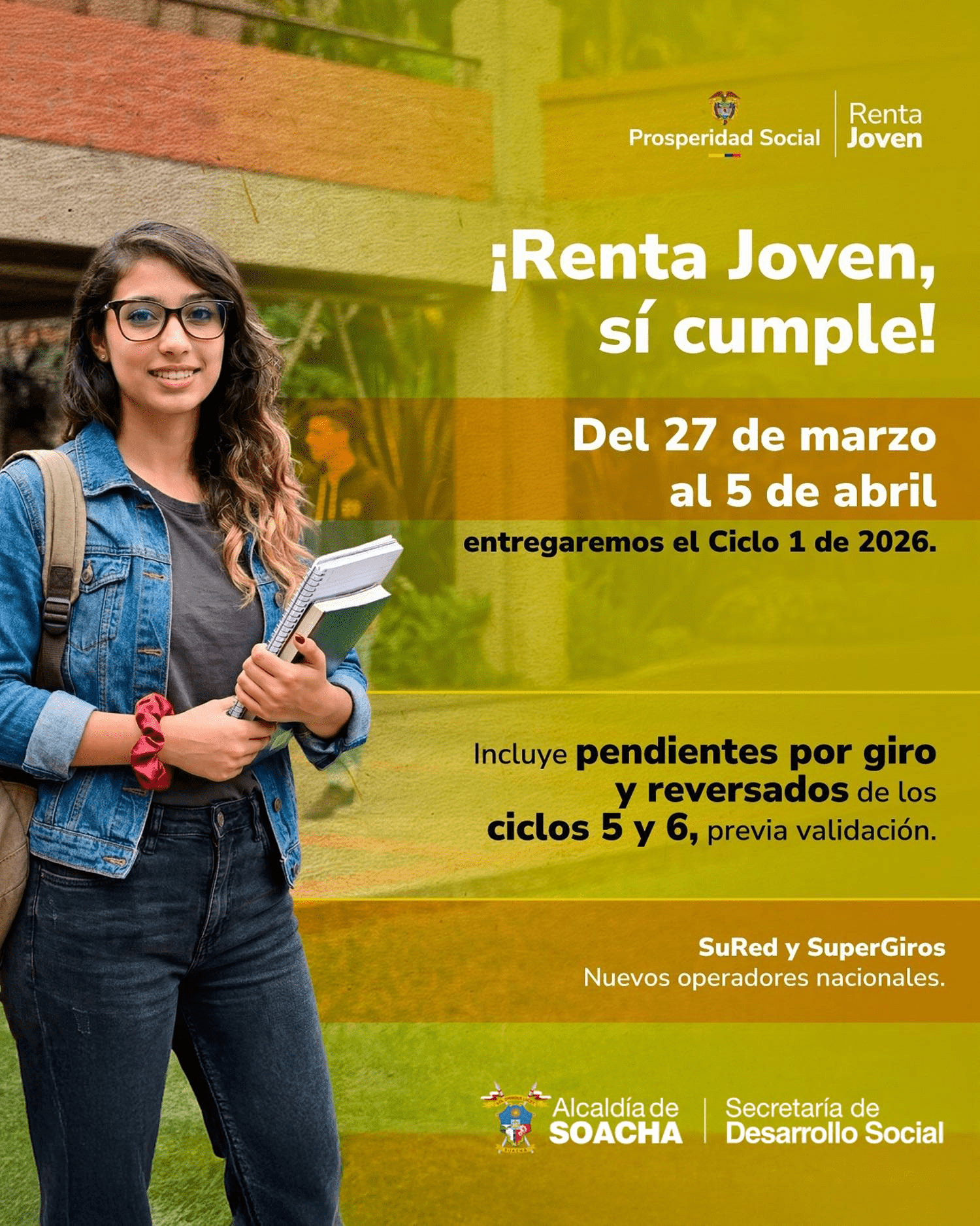 Del 27 de marzo al 5 de abril se realizará la entrega del Ciclo 1 de 2026 de Renta Joven.