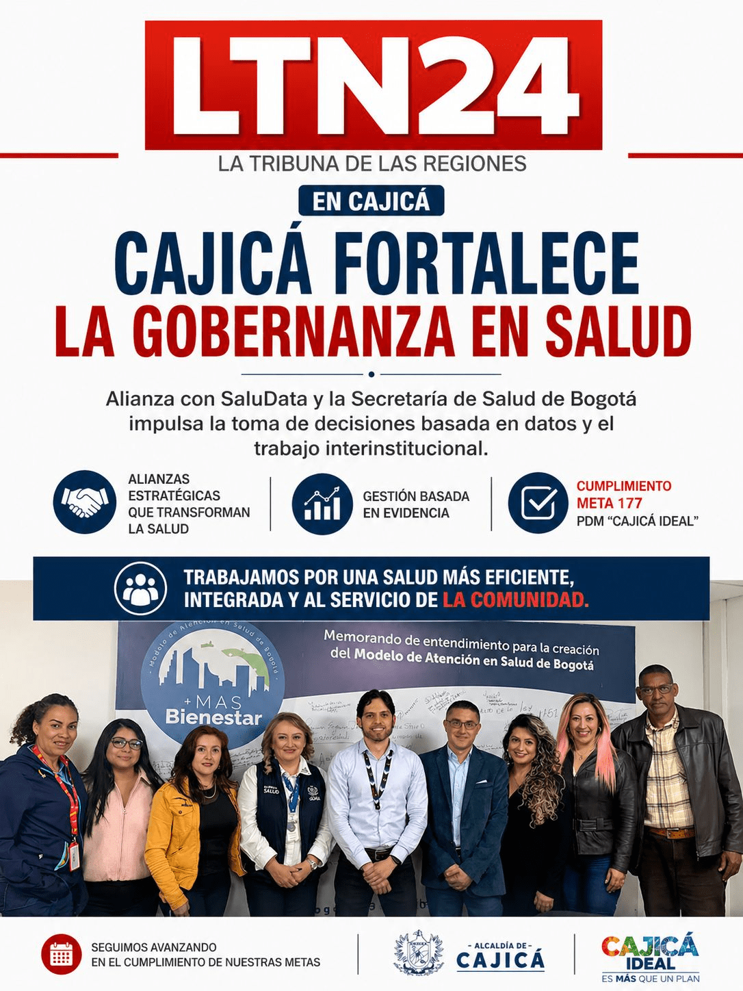Con estas acciones, Cajicá continúa avanzando en el cumplimiento de la meta 177 del Plan de Desarrollo “Cajicá Ideal”, reafirmando su compromiso con una salud más eficiente, articulada y centrada en el bienestar de la comunidad.