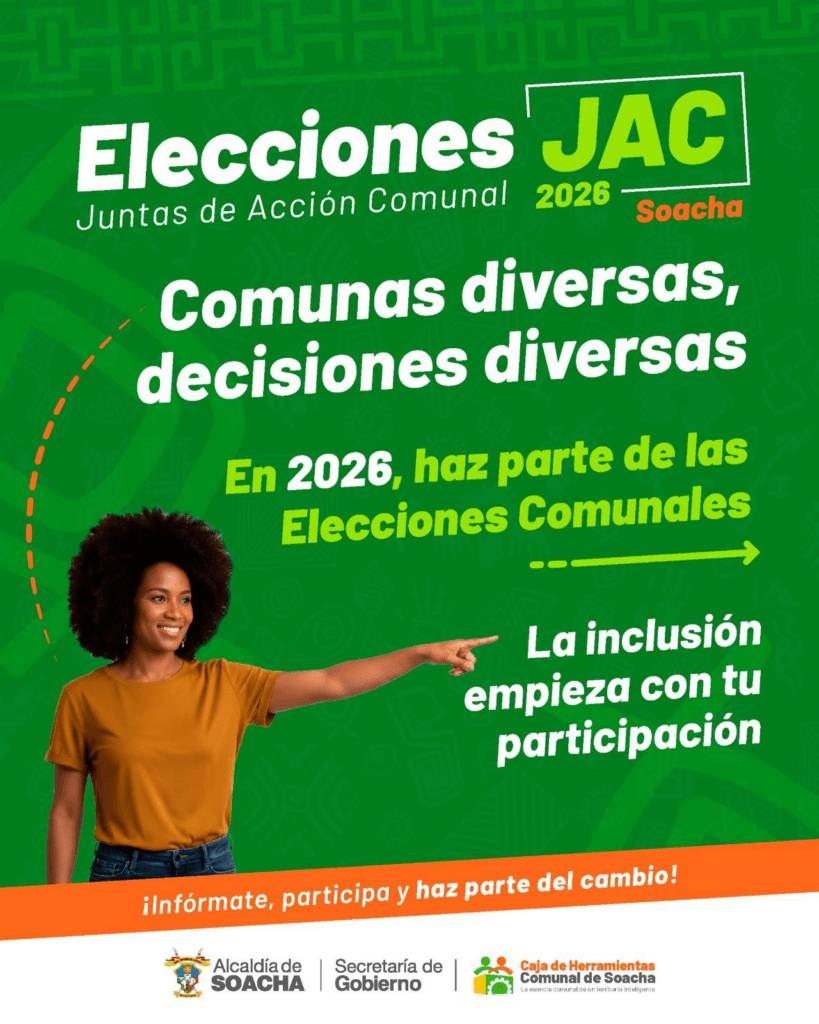 En las Elecciones de Juntas de Acción Comunal 2026, tu voz cuenta para construir mejores barrios y comunas en Soacha.