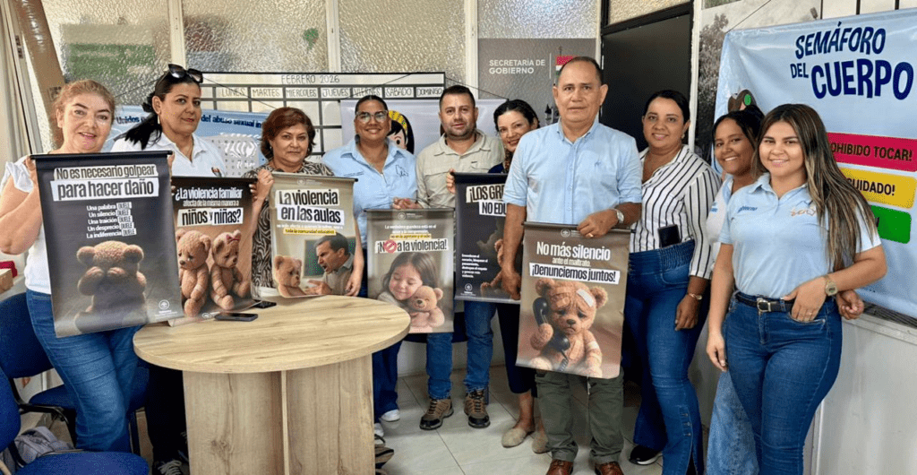 El kit incluye ocho pendones educativos —como el semáforo del cuerpo y material sobre violencia intrafamiliar— y fichas plegables para actividades interactivas que facilitan la identificación y prevención de casos.