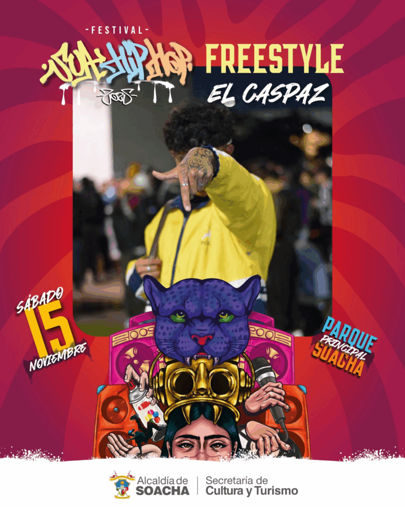 Este sábado 15 de noviembre el Festival Sua Hip Hop 2025, llega al Parque Principal de #Soacha con lo mejor del freestyle.