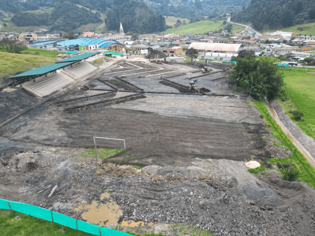 La obra ya alcanza un 56 % de ejecución y tendrá graderías para 460 espectadores, camerinos, baños, cerramientos y la adecuación del campo con grama natural y drenajes. El escenario beneficiará a cerca de 400 niños y jóvenes de las escuelas de formación de la provincia de Ubaté.