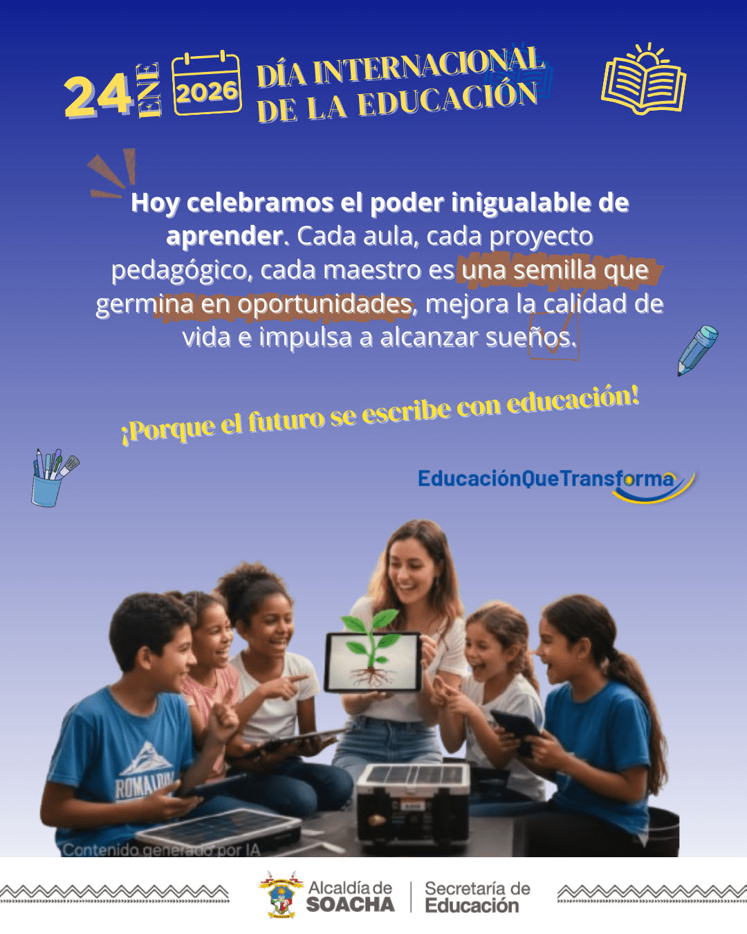 En Soacha estamos comprometidos con una educación pública de calidad que abre caminos y empodera a nuestra niñez y juventud.