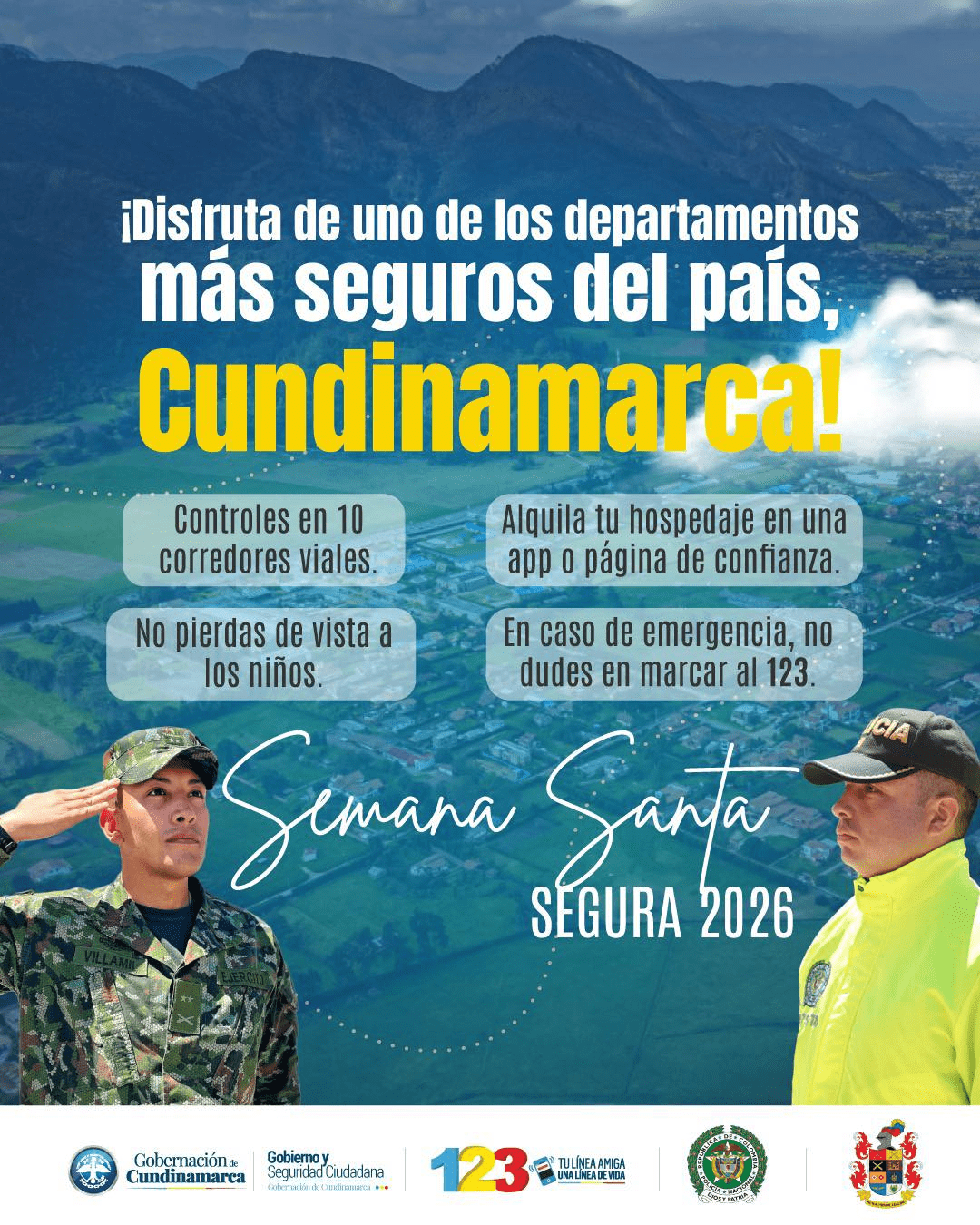 Esta Semana Santa visita Cundinamarca y disfruta de uno de los departamentos más seguros del país: 500 agentes de tránsito en 10 corredores viales y despliegue de 4.600 uniformados en todo el territorio. Además, no hay presencia de grupos armados.