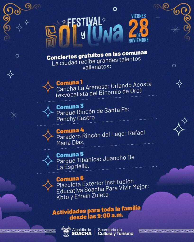 El 28 de noviembre arrancamos con programación totalmente gratis en las comunas, llevando música y cultura a cada rincón de #Soacha.