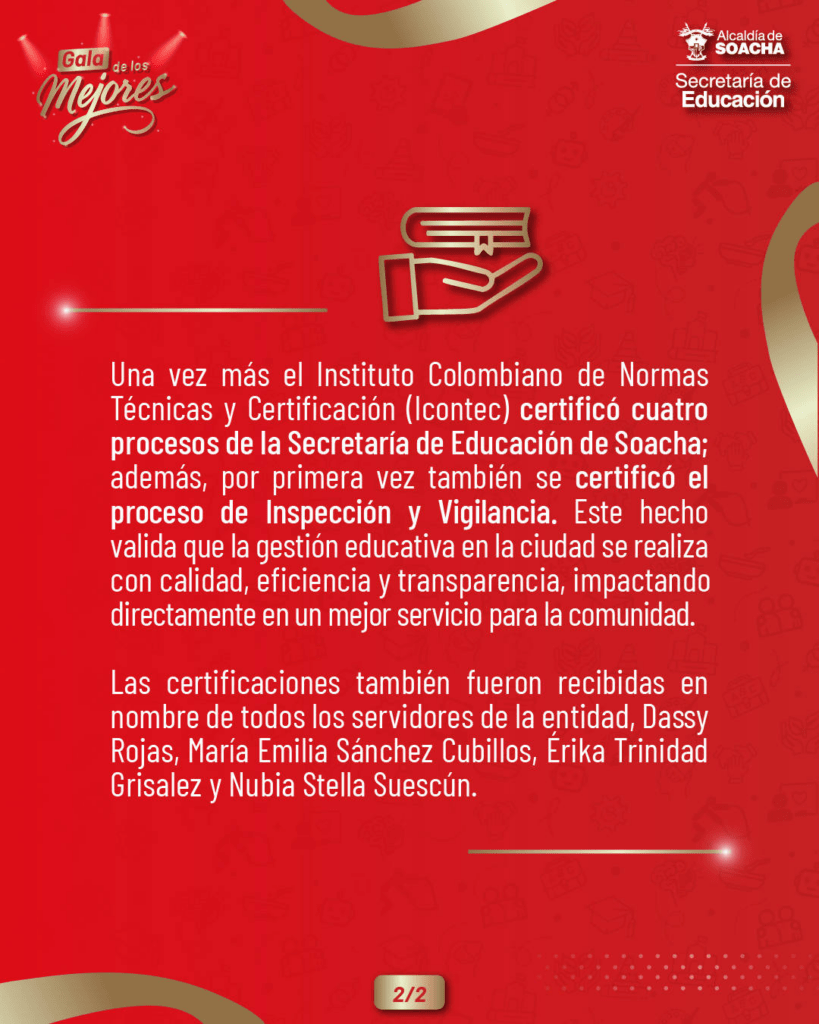 #GalaDeLosMejores también celebramos la certificación de la Secretaría de Educación ante el ICONTEC – Secretaría de Educación de Soacha