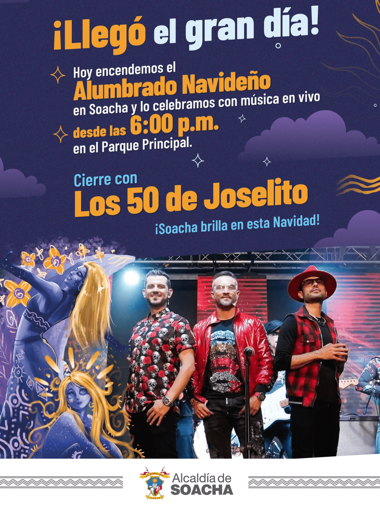 Desde las 6:00 p. m. te esperamos en el Parque Principal para celebrar en familia y cantar con Los 50 de Joselito.