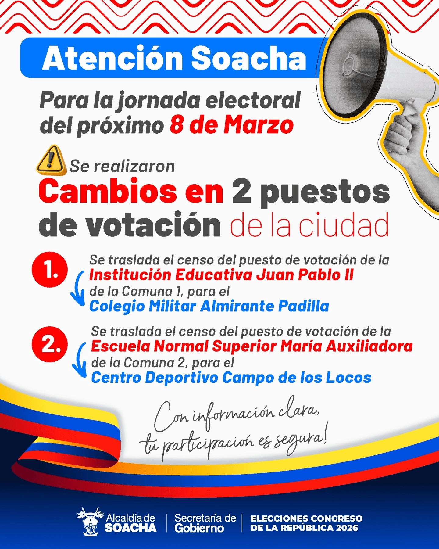 Invitamos a todos los electores a mantenerse atentos a los canales oficiales para confirmar su lugar de votación oportunamente.