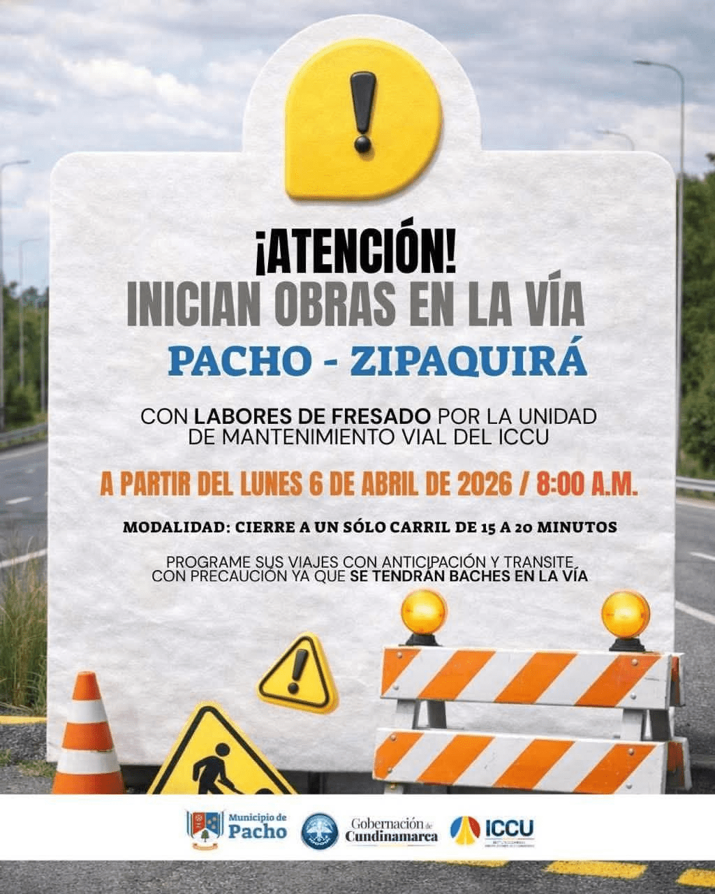 🙏 Se recomienda a la comunidad y conductores tomar vías alternas y programar sus desplazamientos con anticipación.