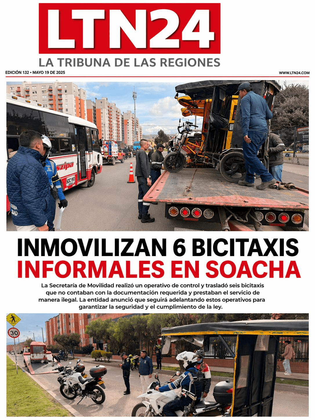 La Secretaría de Movilidad inmovilizó seis bicitaxis por falta de documentos y operación ilegal, en un operativo para reforzar la seguridad y el control del transporte informal