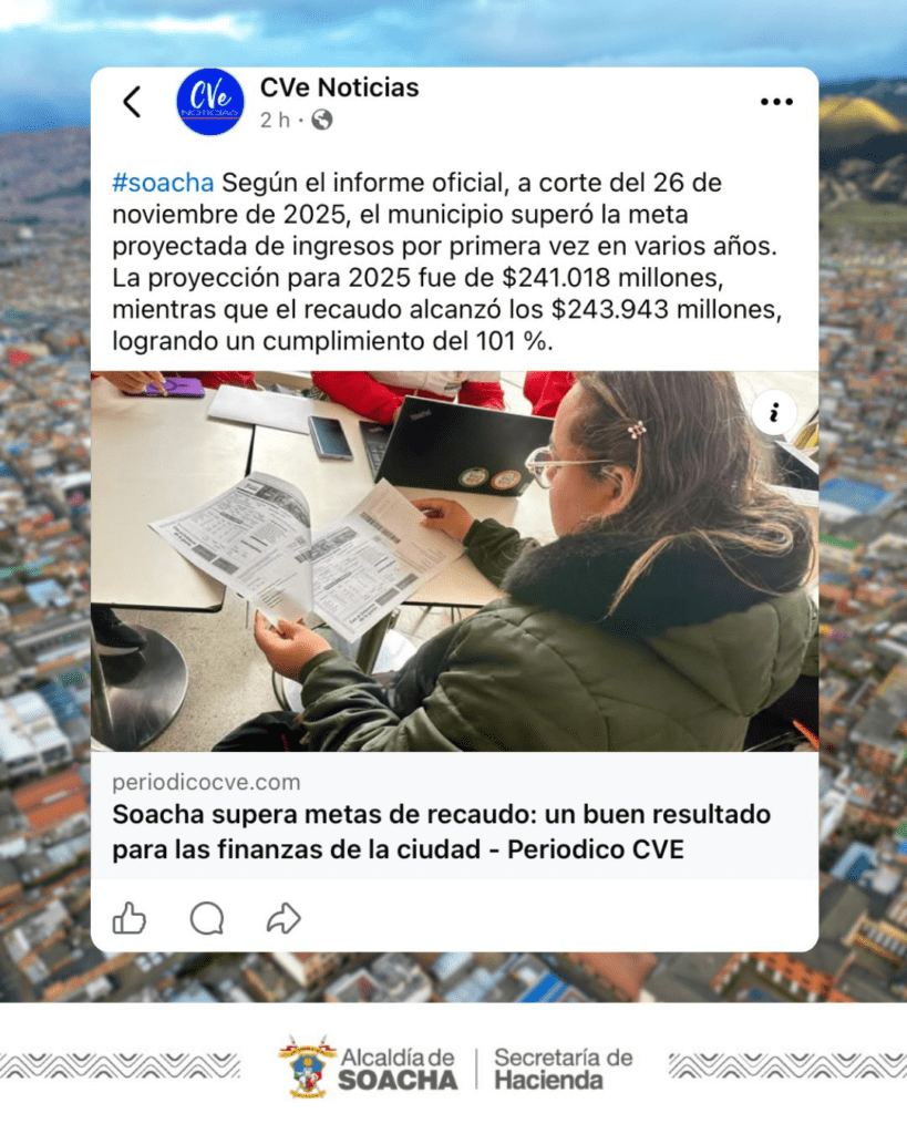 #EnMedios📰 La ciudad de Soacha superó la meta proyectada de ingresos por primera vez.