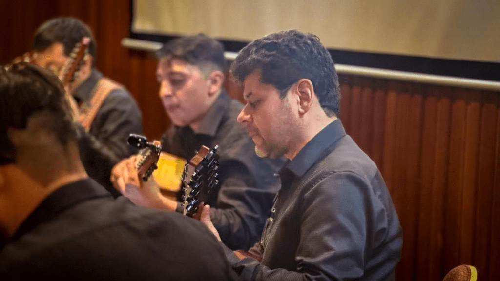 Durante el evento, que tuvo el apoyo del Instituto Departamental de Cultura y Turismo de Cundinamarca (IDECUT), un ensamble de cámara interpretó cuatro de sus obras originales, destacando la riqueza de los formatos de cuerdas pulsadas.