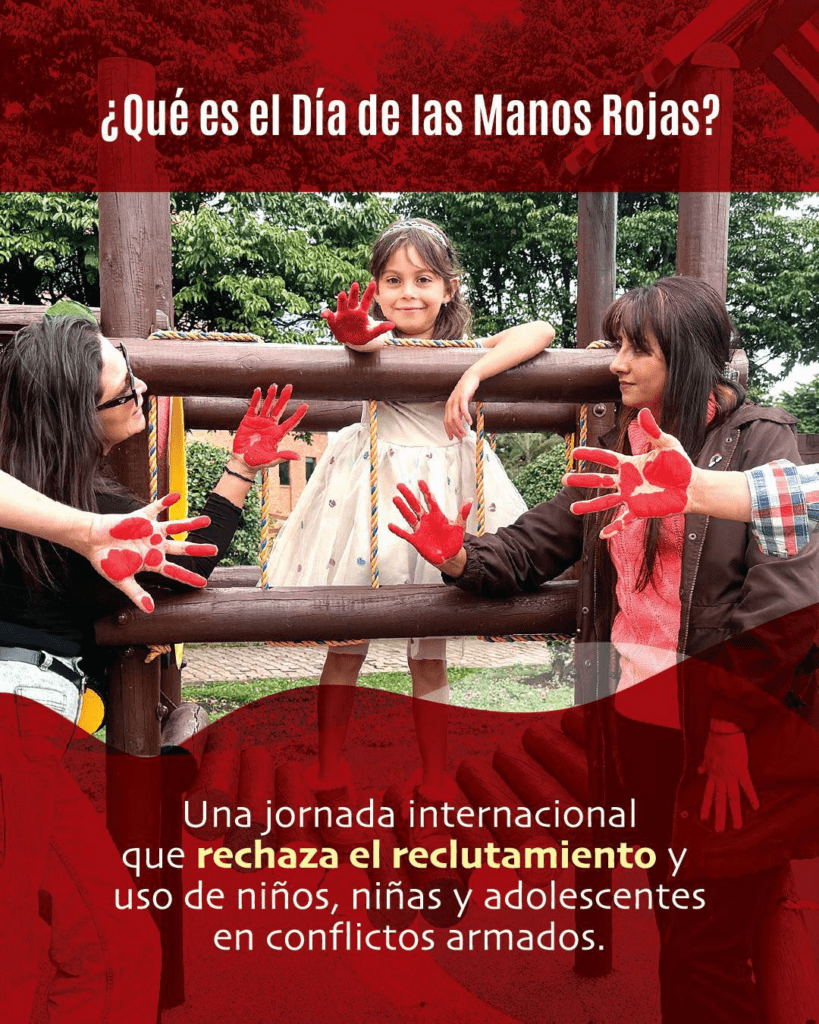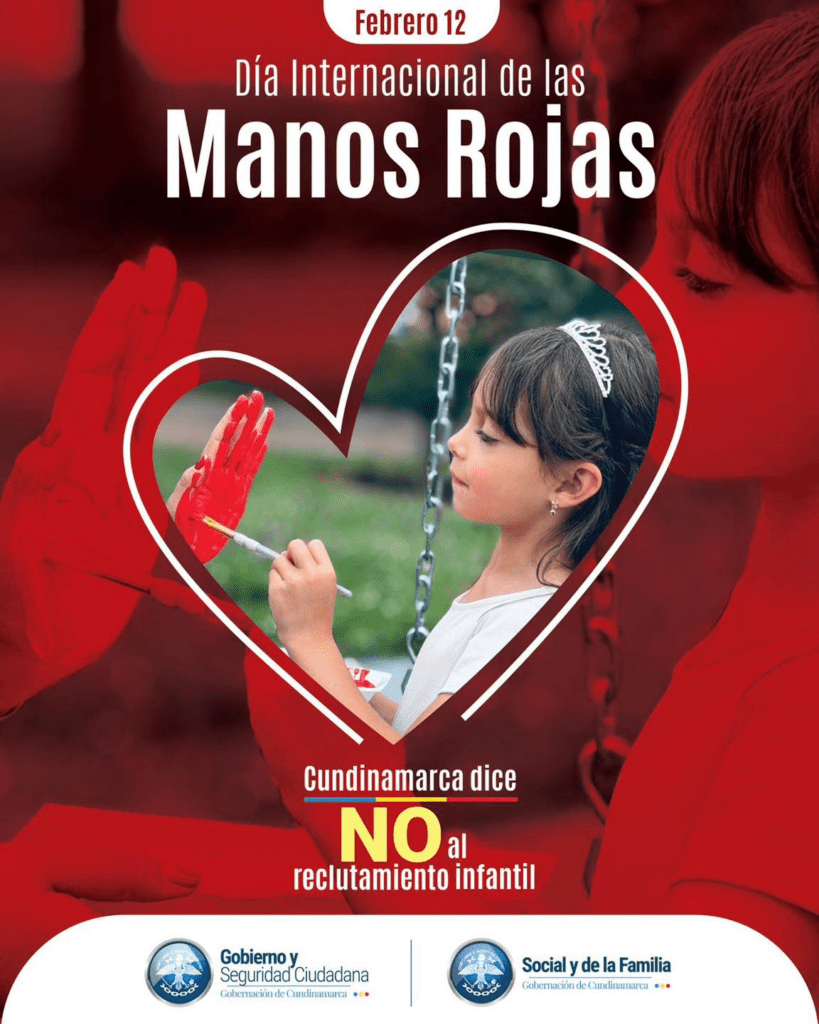 #DíaInternacionalDeLasManosRojas | La Gobernación de Cundinamarca, en conjunto con la Secretaría de Gobierno y Seguridad Ciudadana, conmemora esta fecha especial como un llamado a rechazar el reclutamiento de niños, niñas y adolescentes en el conflicto armado.