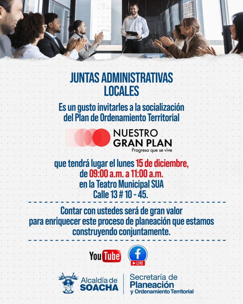 Las Juntas de Acción Comunal y las Juntas Administradoras Locales son fundamentales en la construcción de “Nuestro Gran Plan”, el proyecto del Plan de Ordenamiento Territorial de Soacha.