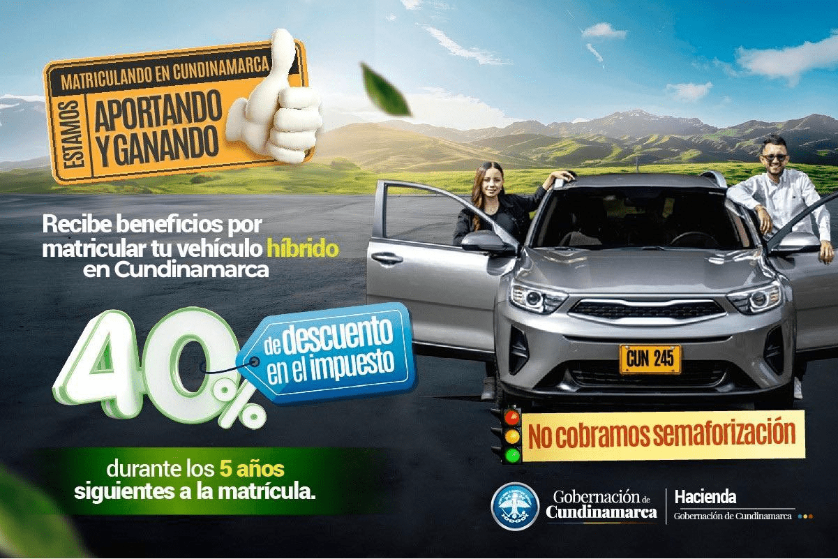 Los vehículos híbridos matriculados en #Cundinamarca tienen 40 % de descuento en el impuesto vehicular por cinco años.
