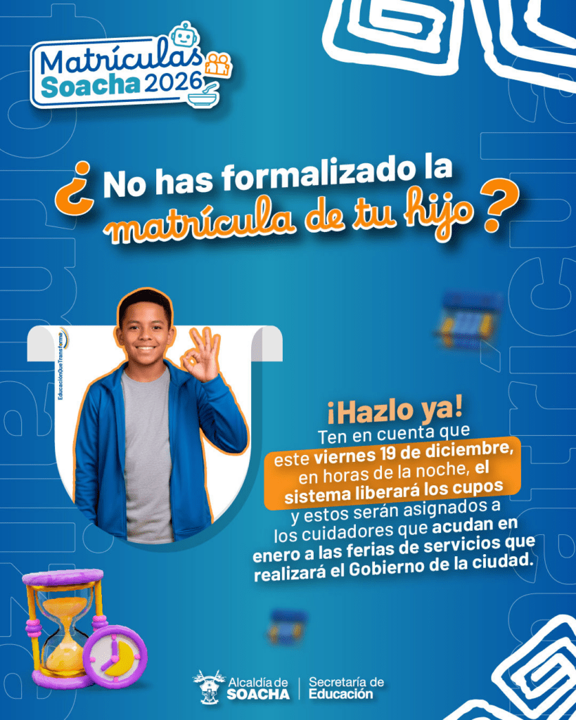#Matriculas2026 ¡Última oportunidad! No te quedes sin el cupo de tu hijo. – Secretaría de Educación de Soacha