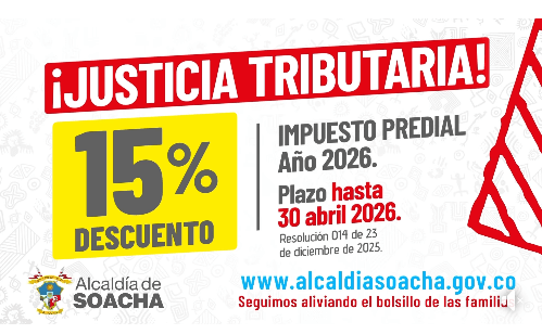 Aún estás a tiempo de aprovechar el 15% de descuento por pronto pago en el Impuesto Predial vigencia 2026, disponible hasta el 30 de abril ![]()
