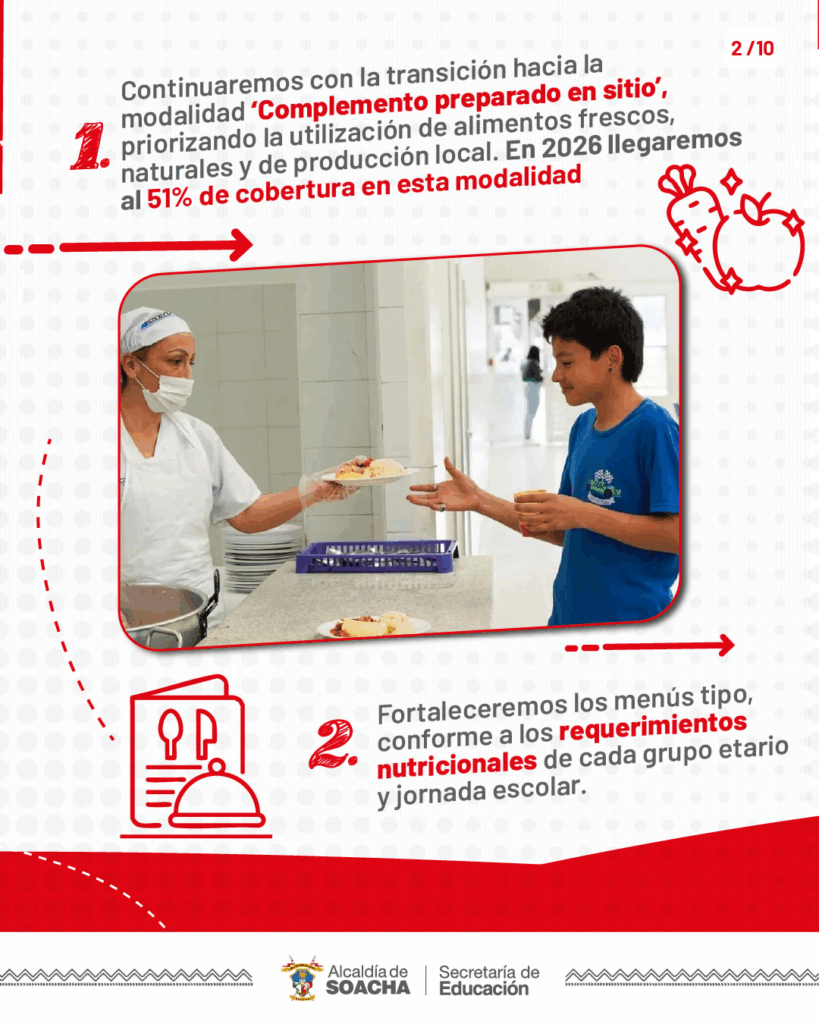 📃 Para la vigencia 2026, proyectamos blindar la calidad del servicio a través de modificaciones contractuales, mediante el fortalecimiento de los menús para reforzar los criterios de inocuidad, la trazabilidad de la cadena de abastecimiento y el monitoreo estricto del servicio.