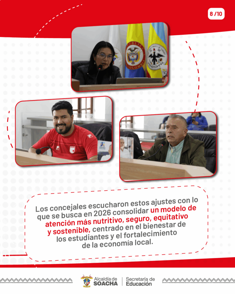En respuesta al control político del Concejo de Soacha, presentamos avances contundentes en la mejora del Programa de Alimentación Escolar (#PAE🍛), destacando la ambiciosa transición de la ración industrializada a la modalidad de complemento preparado en sitio, con lo que promovenos el uso de productos frescos y locales, dinamizando la economía rural y fortaleciendo prácticas saludables.