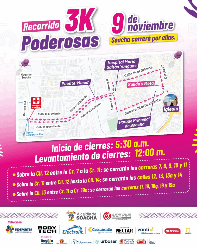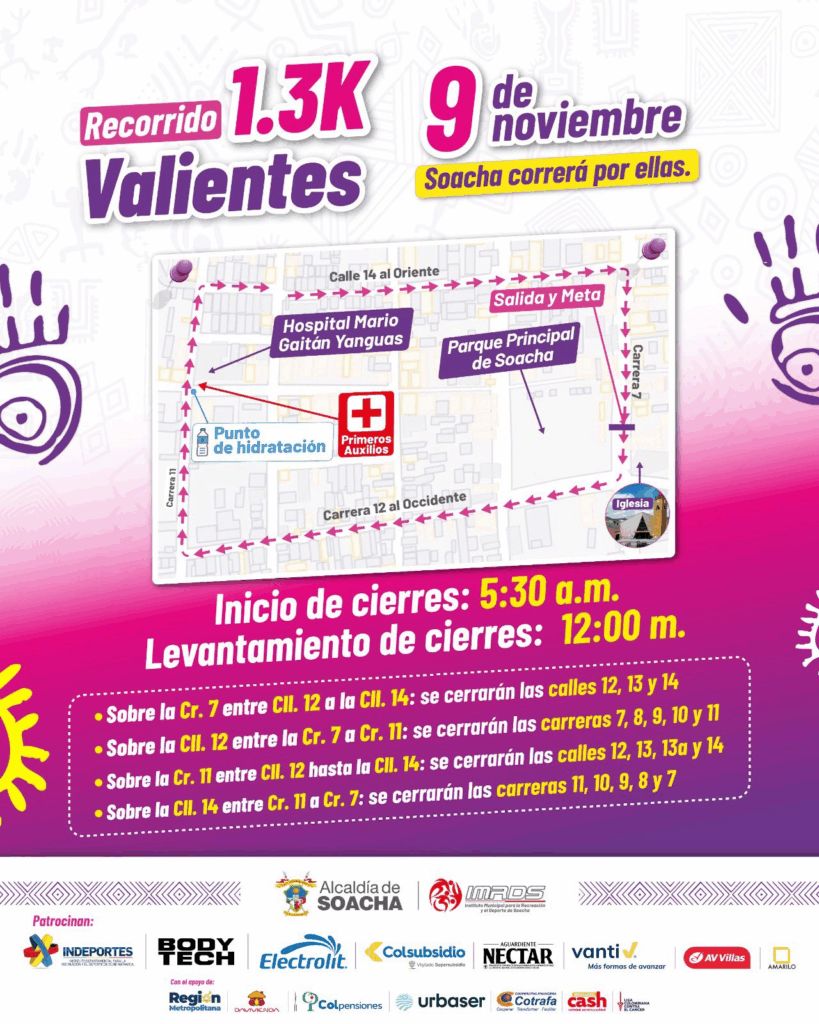 Este domingo 9 de noviembre, durante la realización de la Carrera Mujeres del Sol, se realizarán cierres viales temporales en algunos sectores de la ciudad.