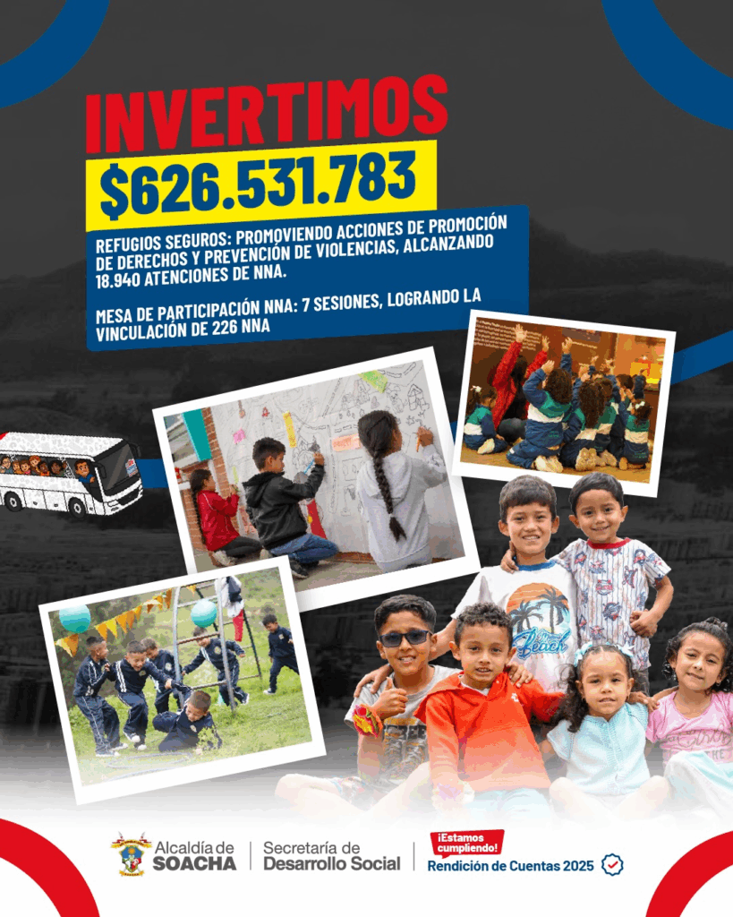 Nuestro compromiso con la niñez se mantiene firme: destinamos $626 millones para proteger sus derechos, brindamos 18.940 atenciones en Refugios Seguros y vinculamos a 226 niños, niñas y adolescentes a espacios de participación. Seguimos construyendo una ciudad más humana, incluyente y llena de oportunidades para todos.