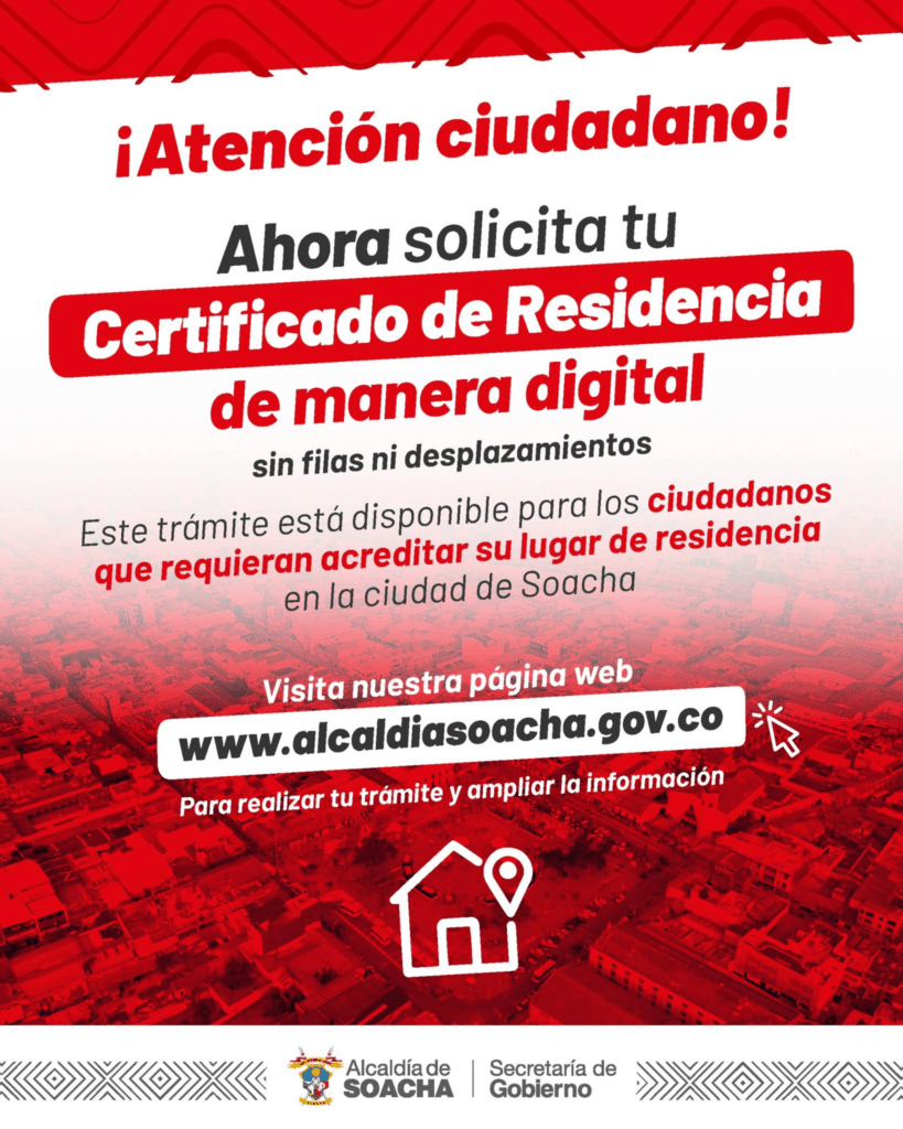 Disponible para los ciudadanos que necesiten acreditar su lugar de residencia en Soacha.