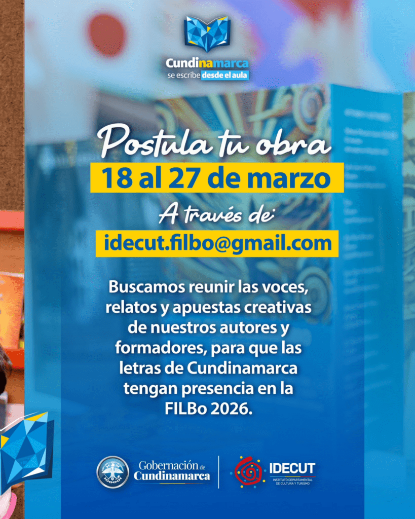 Postúlate del 18 al 27 de marzo de 2026 y haz parte de esta gran vitrina literaria. Envía tu propuesta a idecut.filbo@gmail.com