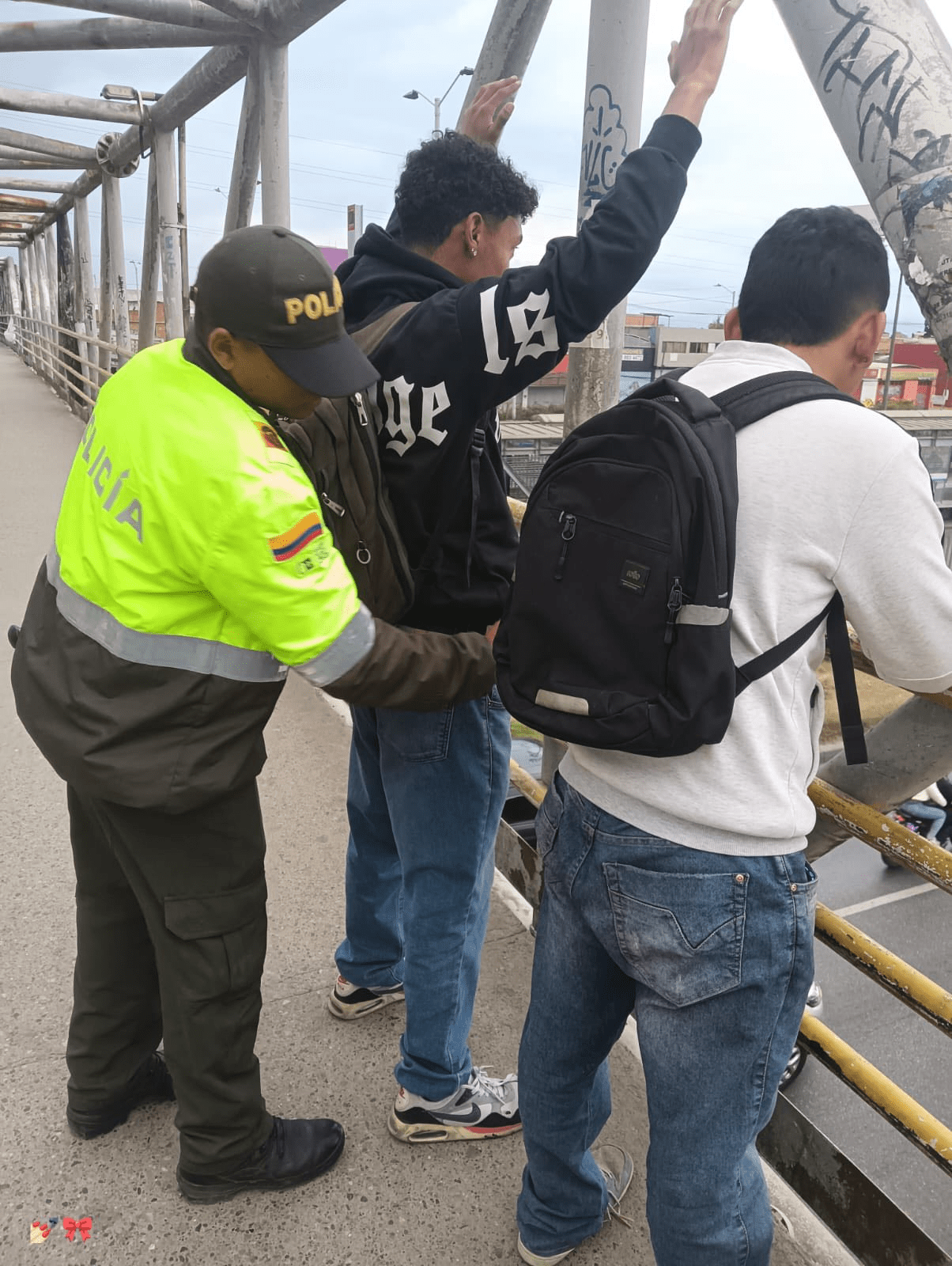 Quienes día a día acompañan a los ciudadanos en los puentes peatonales, su presencia no solo previene delitos, sino que brinda tranquilidad a miles de soachunos que se desplazan hacia su trabajo o lugar de residencia.