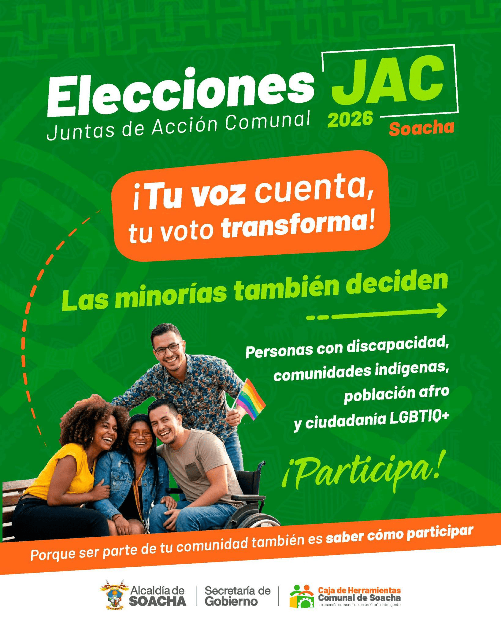 En las elecciones de las Juntas de Acción Comunal 2026, todas y todos somos protagonistas. Las minorías también deciden: personas con discapacidad, comunidades indígenas, población afro y ciudadanía LGBTIQ+ hacen parte activa de la construcción de nuestros barrios.